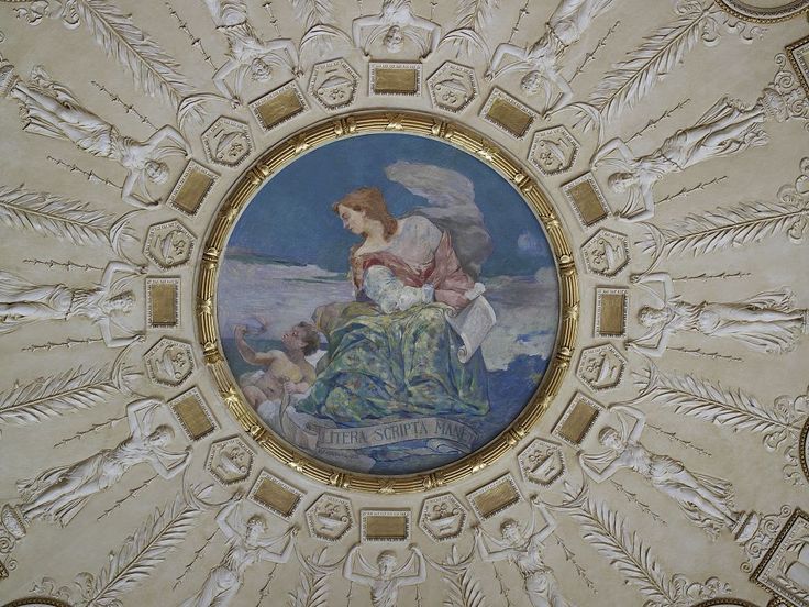 Vox audita perit Littera scripta manet (Voice heard perishes, written word remains) This Latin proverb can be seen in the dome fresco of Library Of Congress |